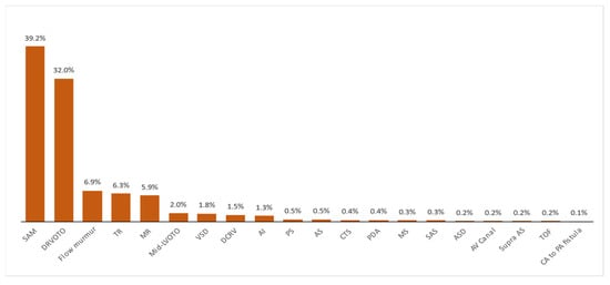 The majority of cats that underwent full echocardiographic examination to identify the cause of a previously detected heart murmur did not present any structural cardiac abnormality (n = 485; 56.7%). These were mainly cases where the blood flow turbulence was associated with SAM (50.3%), DRVOTO (19.9%) and flow murmurs (14.6%). However, when these types of murmurs were analyzed individually as a sole cause of murmur, 56.1% of cats with SAM and 85.0% of cats with DRVOTO did not display any structural cardiac abnormalities on echocardiographic examination. None of the cats with flow murmurs had structural abnormalities, by definition. Most cats with DRVOTO were older individuals, with a median age of 9.3 years (range, 6 months–19.5 years).