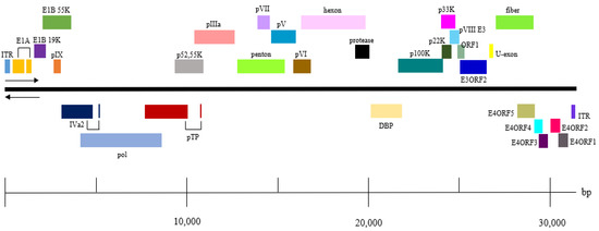 - Davison, A.J.; Benko, M.; Harrach, B. Genetic content and evolution of adenoviruses. J. Gen. Virol. 2003, 84, 2895–2908. [Google Scholar] [CrossRef]