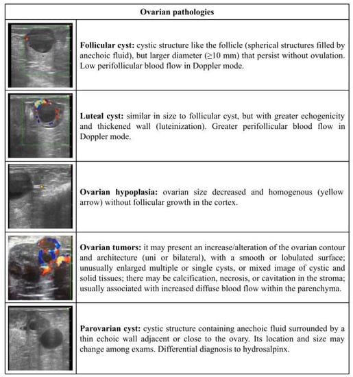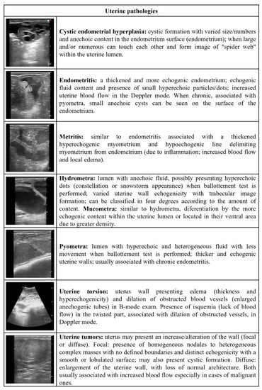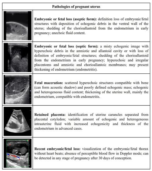 Ultrasonographic characterizations of the main reproductive disorders in small ruminants can enhance diagnosis, as well as contribute to prognosis and decision-making for treatments or lack of. Typically, such descriptions are only available via studies focused on one or two disorders in particular [,,,,,], whereas compilations of descriptions for small ruminants are less commonly incorporated within one paper [].