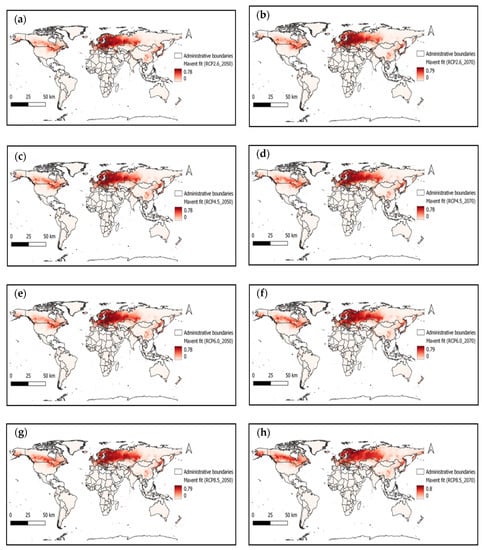 - Phillips, S.J.; Dudík, M. Modeling of Species Distributions with Maxent: New Extensions and a Comprehensive Evaluation. Ecography 2008, 31, 161–175. [Google Scholar] [CrossRef]