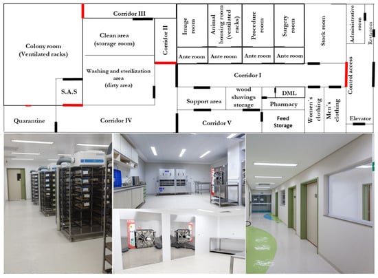A clean area is allowed for restricted staff only, and the entrance is controlled by magnetic doors opened by a personal card. In this area, we store cleaned material, food and water for mice and raise our foundation and expansion colonies of the different lineages of mice (Figure 1). In this area, a more restrictive type of clothing must be worn. Additionally, we have a quarantine room for recently arrived mice. A technical floor above AF that modulates and controls temperature and humidity 24 h to provide the mice with a safe and comfortable environment.