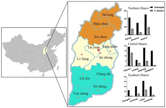 Li, C.-X.; Gao, J.; Shi, S.-R.; Gao, W.-W.; Zhu, X.-Q.; Lei, Y.-P.; Zhang, Y.; Zheng, W.-B. The Seroprevalence of Chlamydia Infection in Sheep in Shanxi Province, China. Vet. Sci. 2022, 9, 656. https://doi.org/10.3390/vetsci9120656