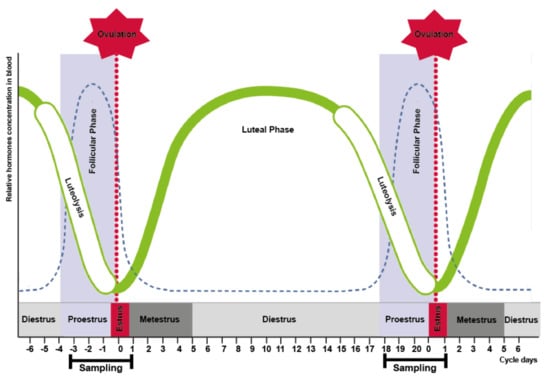 - Wiltbank, M.; Lopez, H.; Sartori, R.; Sangsritavong, S.; Gümen, A. Changes in reproductive physiology of lactating dairy cows due to elevated steroid metabolism. Theriogenology 2006, 65, 17–29. [Google Scholar] [CrossRef]