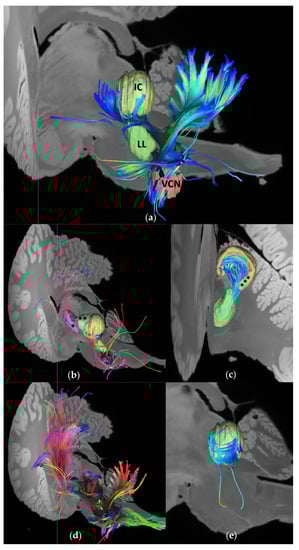 - Sitek, K.R.; Gulban, O.F.; Calabrese, E.; Johnson, G.A.; Lage-Castellanos, A.; Moerel, M.; Ghosh, S.S.; De Martino, F. Mapping the human subcortical auditory system using histology, postmortem MRI and in vivo MRI at 7T. Elife 2019, 8, e48932. [Google Scholar] [CrossRef] [PubMed]