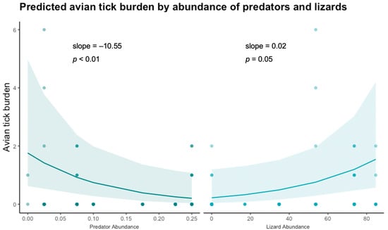 | Avian tick burden | (Intercept) | −0.15 | 0.99 | −0.15 | 0.88 |