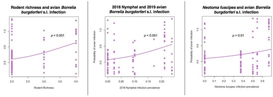 Lilly M, Amaya-Mejia W, Pavan L, Peng C, Crews A, Tran N, Sehgal R, Swei A. Local Community Composition Drives Avian Borrelia burgdorferi Infection and Tick Infestation. Veterinary Sciences. 2022; 9(2):55. https://doi.org/10.3390/vetsci9020055