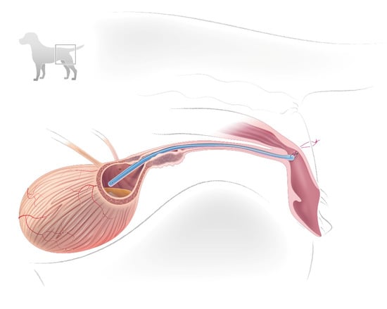 - Stiffler, K.S.; Stevenson, M.A.M.; Cornell, K.K.; Glerum, L.E.; Smith, J.D.; Miller, N.A.; Rawlings, C.A. Clinical use of low-profile cystostomy tubes in four dogs and a cat. J. Am. Vet. Med. Assoc. 2003, 223, 325–329. [Google Scholar] [CrossRef]