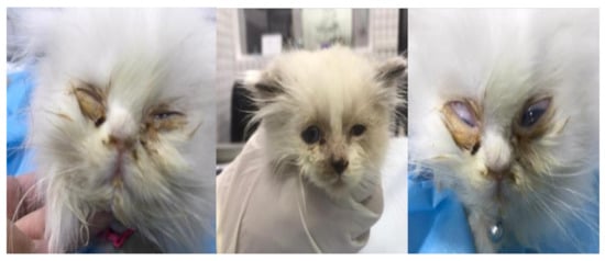- Wieliczko, A.; Płoneczka-Janeczko, K. Feline herpesvirus 1 and Chlamydophila Felis prevalence in cats with chronic conjunctivitis. Pol. J. Vet. Sci. 2010, 13, 381–383. [Google Scholar]