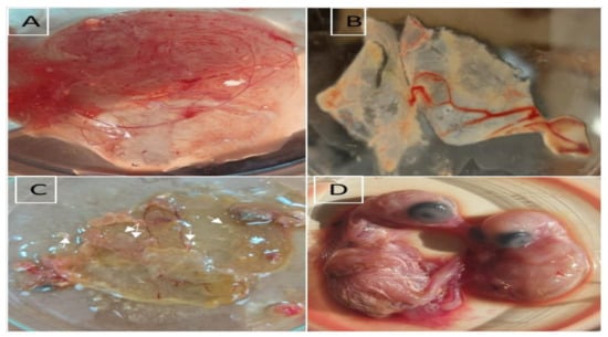 Collected supernatants were treated with 100 IU/mL of penicillin and 100 μg/mL streptomycin stock solution and 0.2 mL were inoculated onto the CAMs of 12-days-old SPF eggs []. The eggs were incubated at 37 °C for 5–7 days and checked twice daily. Mortalities within the first 24 h of inoculation were considered non-specific. After three blind passages, the CAMs and fluid were harvested aseptically and cytopathic effect on CAM were recorded. CAMs containing pock lesions were homogenized with PBS, centrifuged, and the supernatants were kept at −20 °C until they were used in PCR.