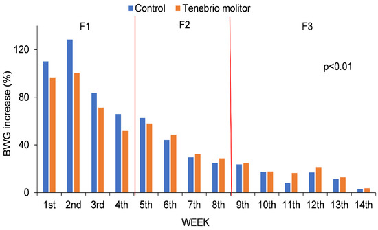 | Parameter | F1 (1–29 d) | F2 (29–57 d) | F3 (57–95 d) | T. molitor Meal | |||