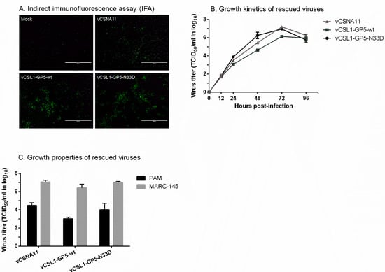 2.4. Growth Properties and Kinetics of Rescued Viruses