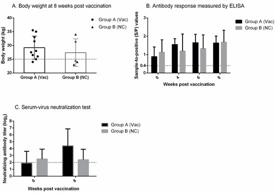 - Kim, H.; Kim, H.K.; Jung, J.H.; Choi, Y.J.; Kim, J.; Um, C.G.; Bin Hyun, S.; Shin, S.; Lee, B.; Jang, G.; et al. The assessment of efficacy of porcine reproductive respiratory syndrome virus inactivated vaccine based on the viral quantity and inactivation methods. Virol. J. 2011, 8, 323. [Google Scholar] [CrossRef] [PubMed] [Green Version]