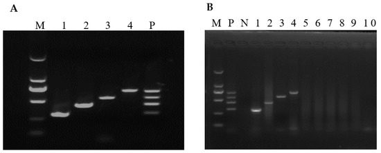 2.5. Detecting Target Viruses from Field Samples Using mRT-PCR