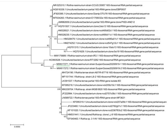 - Rothia nasimurium. Available online: https://www.ncbi.nlm.nih.gov/nuccore/MW617271.1 (accessed on 17 February 2021).
