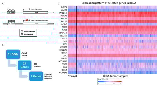 3.2. Gene Filtration for Potential Epigenetic Regulation in Breast Cancer