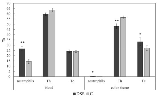 - Daniluk, J.; Daniluk, U.; Reszec, J.; Rusak, M.; Dabrowska, M.; Dabrowski, A. The protective effect of cigarette smoke on the course of dextran sulphate sodium-induced colitis are accompanied by lymphocyte subpopulation changes in the blood and colon. Int. J. Colorectal Dis. 2017, 32, 1551–1559. [Google Scholar] [CrossRef] [PubMed]