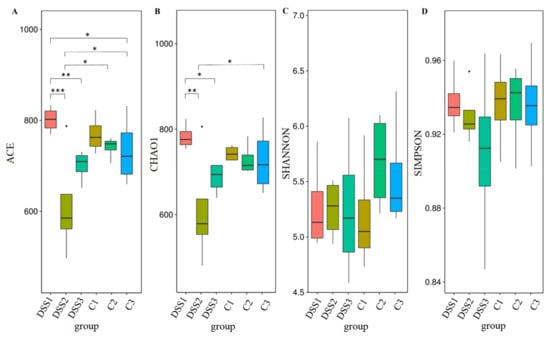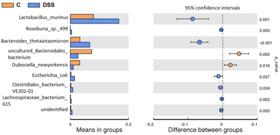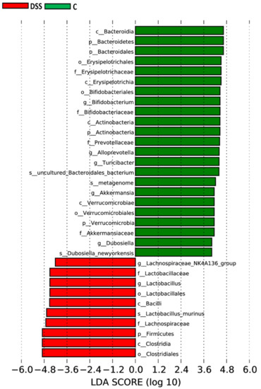 - Munyaka, P.M.; Rabbi, M.F.; Khafipour, E.; Ghia, J.E. Acute dextran sulphate sodium (DSS)-induced colitis promotes gut microbial dysbiosis in mice. J. Basic Microbiol. 2016, 56, 986–998. [Google Scholar] [CrossRef]