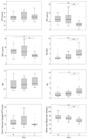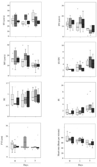 - Herlt, C.; Stark, R.; Sigmarsson, H.L.; Kauffold, J. Feasibility of transabdominal Doppler sonography for studying uterine blood flow characteristics in cycling gilts. Tierarztl. Prax. Ausg. G Grosstiere Nutztiere. 2018, 46, 154–163. [Google Scholar] [CrossRef]