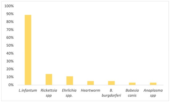 Leishmania infantum, 14% (5/37)