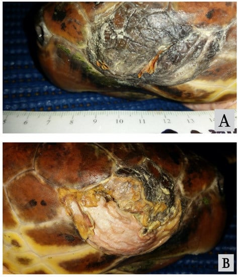 - Glazebrook and Campbell. A survey of the diseases of marine turtles in northern Australia. I. Farmed Turtles. Dis. Aquat. Org. 1990, 9, 83–95. [Google Scholar] [CrossRef]