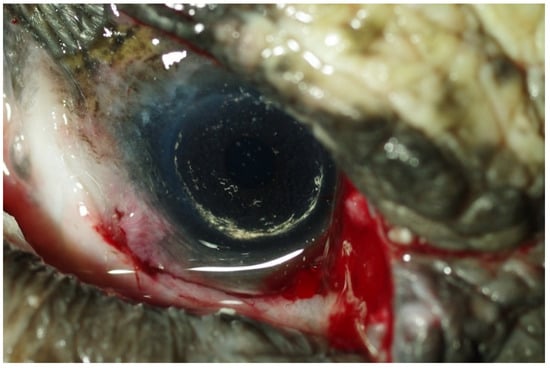 - Işler, C.T.; Altuğ, M.; Cantekİn, Z.; Ozsoy, S.Y.; Yurtal, Z.; Deveci, M.Z.Y. Evaluation of the eye diseases seen in Loggerhead Sea turtle (Caretta caretta). Rev. Med. Vet. 2014, 165, 258–262. [Google Scholar]
