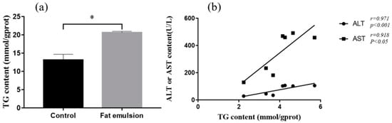 2.6. Effect of Fat Emulsion on TG Content in Hepatocytes