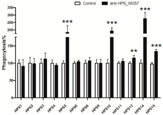 3.4. Antibody-Dependent Phagocytosis Is Associated with the Immunoprotective Effects of HPS_06257 against HPS_06257-Expressing Strains