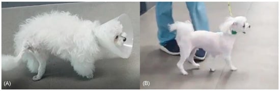 Gait analysis performed 23 months after surgery revealed that functions of the right pelvic limb were comparable with those of the healthy left pelvic limb. Force plate and pressure-sensitive walkway systems are widely used and validated for analyzing gait and evaluating limb function [28,29,30]. The pressure-sensitive walkway system has the advantage of being able to measure multiple gait cycles and ground reaction force of all limbs in one pass compared to the force plate [29]. Furthermore, temporospatial data such as velocity, acceleration, stance, and stride time could be able to obtain at once with ground reaction force. Especially in small dogs, it is difficult to obtain only 1 paw strike at a time using the standard force plat size. Therefore, pressure-sensitive walkways can be more versatile regarding variable patient sizes. We reported average maximum force expressed as % of body weight through an average of two trials. The symmetry difference of both the right and left pelvic limbs was found to be 1.5%. Previous studies have reported that the symmetry difference between the right and left limbs normally varies by 3.2% to 6% [31,32].