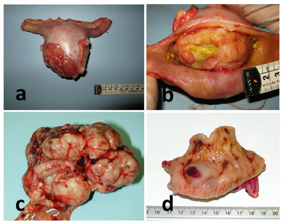 Gastrointestinal stromal tumors (GISTs) are the most common mesenchymal neoplasms affecting the gastrointestinal (GI) tract wall in humans [1,2] as well as dogs [3] and arise from the neoplastic transformation of interstitial cells of Cajal (ICC) [1,2,4], which are ‘pacemaker’ cells interposed between the plexuses myenteric and muscular tunic of the GI tract, with the function of coordinating peristalsis. Most GISTs are diagnosed on the basis of the immunohistochemical demonstration of the expression of KIT (CD117, stem cell factor receptor), a type-III tyrosine kinase receptor encoded by the protoncogene c-KIT, which, therefore, has evidential value in the diagnosis of GIST, which is otherwise difficult to distinguish from other GI mesenchymal neoplasms. In fact, retrospective studies regarding dogs and humans have shown that most of the gastrointestinal mesenchymal neoplasms, previously classified as leiomyomas or leiomyosarcomas, express CD117 and are then to be diagnosed as GISTs [5,6,7,8,9,10,11,12,13,14,15,16].