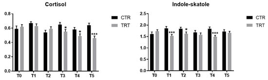 | Indole/skatole (μmol/g) | 1.76 | 1.60 | 1.67 | 1.73 | 1.63 | 1.66 | 1.69 | 1.68 | 0.04 | 0.06 | <0.001 | 0.937 | 0.001 |