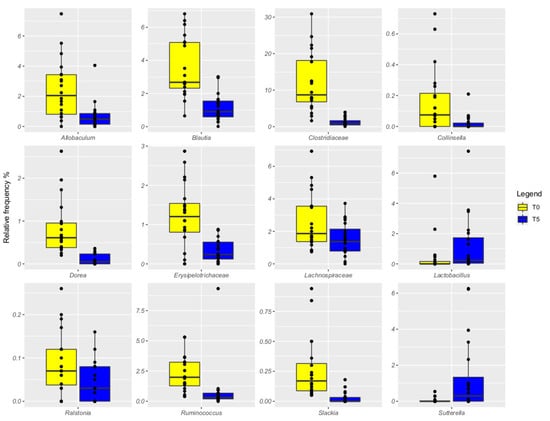 - David, L.A.; Maurice, C.F.; Carmody, R.N.; Gootenberg, D.B.; Button, J.E.; Wolfe, B.E.; Ling, A.V.; Devlin, A.S.; Varma, Y.; Fischbach, M.A. Diet rapidly and reproducibly alters the human gut microbiome. Nature 2014, 505, 559–563. [Google Scholar] [CrossRef] [PubMed] [Green Version]
