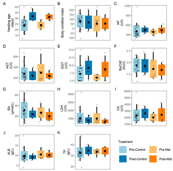 - Rinaud, T.; Krüger, O.; Ottensmann, M.; Chakarov, N. Apparent Physiological Costs of Blood Parasites in the Early-Life of a Vertebrate Host-Only during Acute Infections. 2022. Available online: https://ecoevorxiv.org/4tcqu/ (accessed on 29 July 2022).