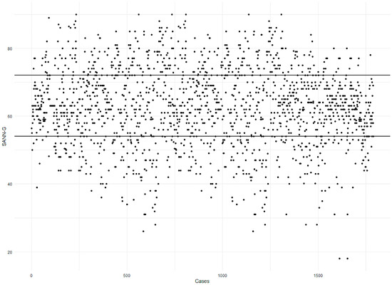 In the SANN-G analysis, scatter plots were employed to visually represent the distribution of attitudes across various study dimensions, including nutritional norms, habits, assessment, intervention, and individualization. These plots provided a clear visual differentiation among healthcare workers with positive, negative, or neutral attitudes, highlighting where the majority of the sample fell within each category.