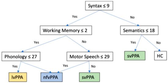 Decision tree developed by Matias-Guiu et al. (2021) [28]. svPPA—semantic variant PPA; nfvPPA—non-fluent PPA; lvPPA—logopenic variant PPA. HC = healthy control.