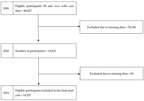 Flowchart showing the number of participants included in the analysis (HRS-USA 2006–2010–2016).