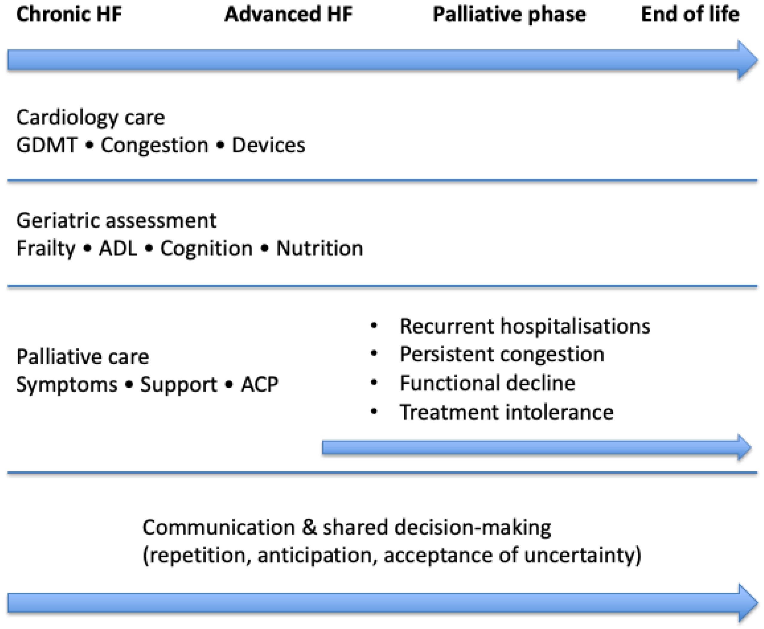 17]. The complex and non-linear trajectory of advanced HF in older adults is summarized in