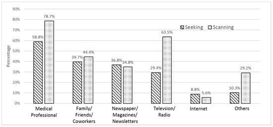 - Shim, M.; Kelly, B.; Hornik, R. Cancer information scanning and seeking behavior is associated with knowledge, lifestyle choices, and screening. J. Health Commun. 2006, 11, 157–172. [Google Scholar] [CrossRef] [PubMed]