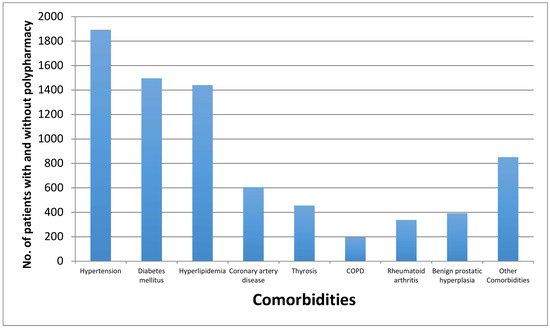 Prevalence of most frequent comorbidity diseases among elderly patients with and without polypharmacy in Saudi Arabia.