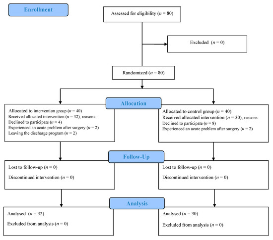 - Sharif, F.; Moshkelgosha, F.; Molazem, Z.; Kalyani, M.N.; Vossughi, M. The effects of discharge plan on stress, anxiety and depression in patients undergoing percutaneous transluminal coronary angioplasty: A randomized controlled trial. Int. J. Community Based Nurs. Midwifery 2014, 2, 60–68. [Google Scholar] [PubMed]