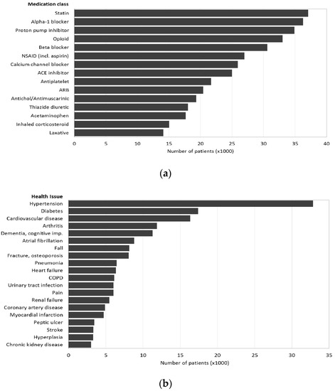 Notes: ARB = angiotensin receptor blocker; COPD = chronic obstructive lung disease. (a) Medication class; (b) health issues.