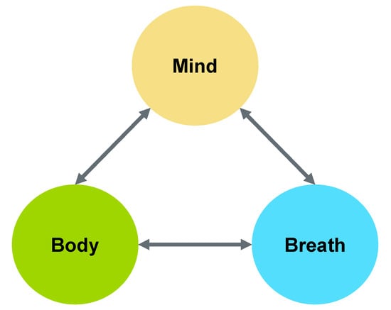 While both COPD and dysphagia are physiologically-based diseases, their consequences extend far beyond physiology. What is less clear, however, is whether the relationship between the physiology of the disease and the non-physiological consequences is multidirectional. Psycho-emotional consequences may actually lead to a downward spiral of the disease, negatively impacting the impaired physiology, which may further magnify the psycho-emotional consequences of the disease in a more cyclical manner. Support for such a relationship is observed in studies of the mind-body-breath connection, which suggests that the actions of the mind, body, and breath are all interrelated and interdependent (see Figure 1) [,,,]. For example, this multidirectional relationship between physiology (body/breath) and psychology (mind/breath) is apparent under stressful conditions. A stressful state of mind can lead our nervous system into fight-or-flight mode. This activation of the parasympathetic nervous system is characterized by a faster respiratory rate, an alteration of breathing patterns, and a heightened alert state.