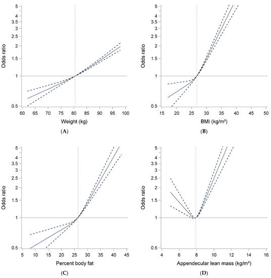 3.2. Weight, BMI, Percent Body Fat, ALM/ht2 and Likelihood of Mobility Limitation