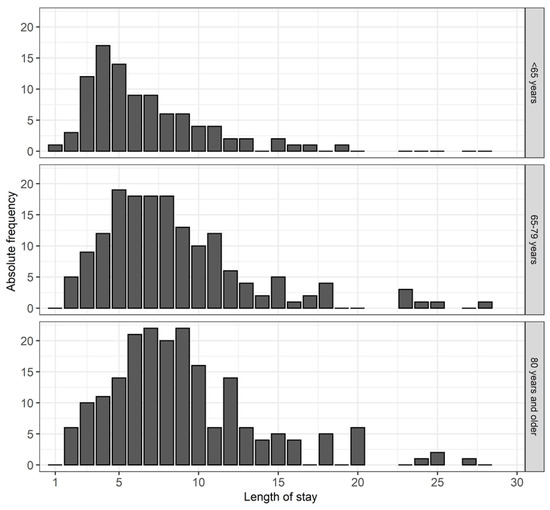 The following supporting information can be downloaded at: https://www.mdpi.com/article/10.3390/geriatrics7010011/s1, Table S1: Results of the regression analysis of hospital LOS and different factors for patients aged <65 years; Table S2: Results of the regression analysis of hospital LOS and different factors for patients aged between 65 years and 79 years.