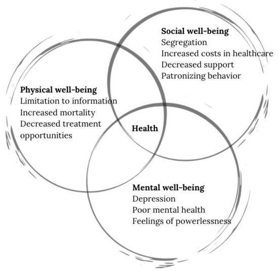 In the mental sphere, ageist attitudes to older adults have deep psychological consequences [14], these attitudes have been linked to depression, poor mental health outcomes [15], and lower overall wellbeing [16]. Older adults may also have limited access to certain psychological treatment amid misconceptions about their later potential in life [17]. Figure 1 depicts the impact of negative attitudes in the different spheres of health, and even though separately grouped, it is important to establish the interdependence and repercussions of the negative effects with the other domains.