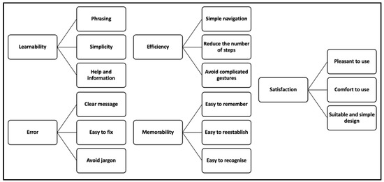 - Al-Aidaroos, A.S.A.; Mutalib, A.A. Design of the usability measurement tool for multimodal mobile applications. J. Teknol. 2015, 77, 41–47. [Google Scholar] [CrossRef][Green Version]