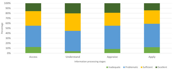 Caregivers’ health literacy distribution by information processing stages/categories (HLS-EU-PT).