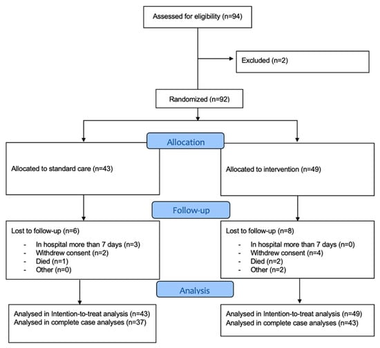 Study data were collected and managed using the Research Electronic Data Capture tool (REDCap) hosted at North Denmark Region [,]. REDCap is a secure, web-based software platform designed to support data capture for research studies. Participants were randomised 1:1 using REDCap either to the standard care group or intervention group.
