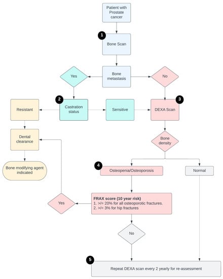 - Casado, E.; Borque-Fernando, A.; Caamaño, M.; Graña, J.; Muñoz-Rodríguez, J.; Morote, J. Multidisciplinary Consensus on the Pre-vention and Treatment of Osteoporosis and Fragility Fractures in Patients with Prostate Cancer Receiving Androgen-Deprivation Therapy. World J. Mens Health 2022, 40, 74–86. [Google Scholar] [CrossRef]