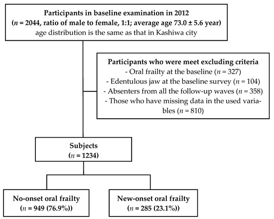 Chicago/Turabian StyleNishimoto, Misa, Tomoki Tanaka, Hirohiko Hirano, Yutaka Watanabe, Yuki Ohara, Maki Shirobe, and Katsuya Iijima. 2023. "Severe Periodontitis Increases the Risk of Oral Frailty: A Six-Year Follow-Up Study from Kashiwa Cohort Study" Geriatrics 8, no. 1: 25. https://doi.org/10.3390/geriatrics8010025