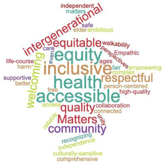 Session 1, held in December 2020, was opened by asking participants to share words they most associate with the term “age-friendly” (Figure 2).